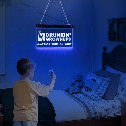 Drunkin' Grownups America Runs on Wine LED Neon Sign