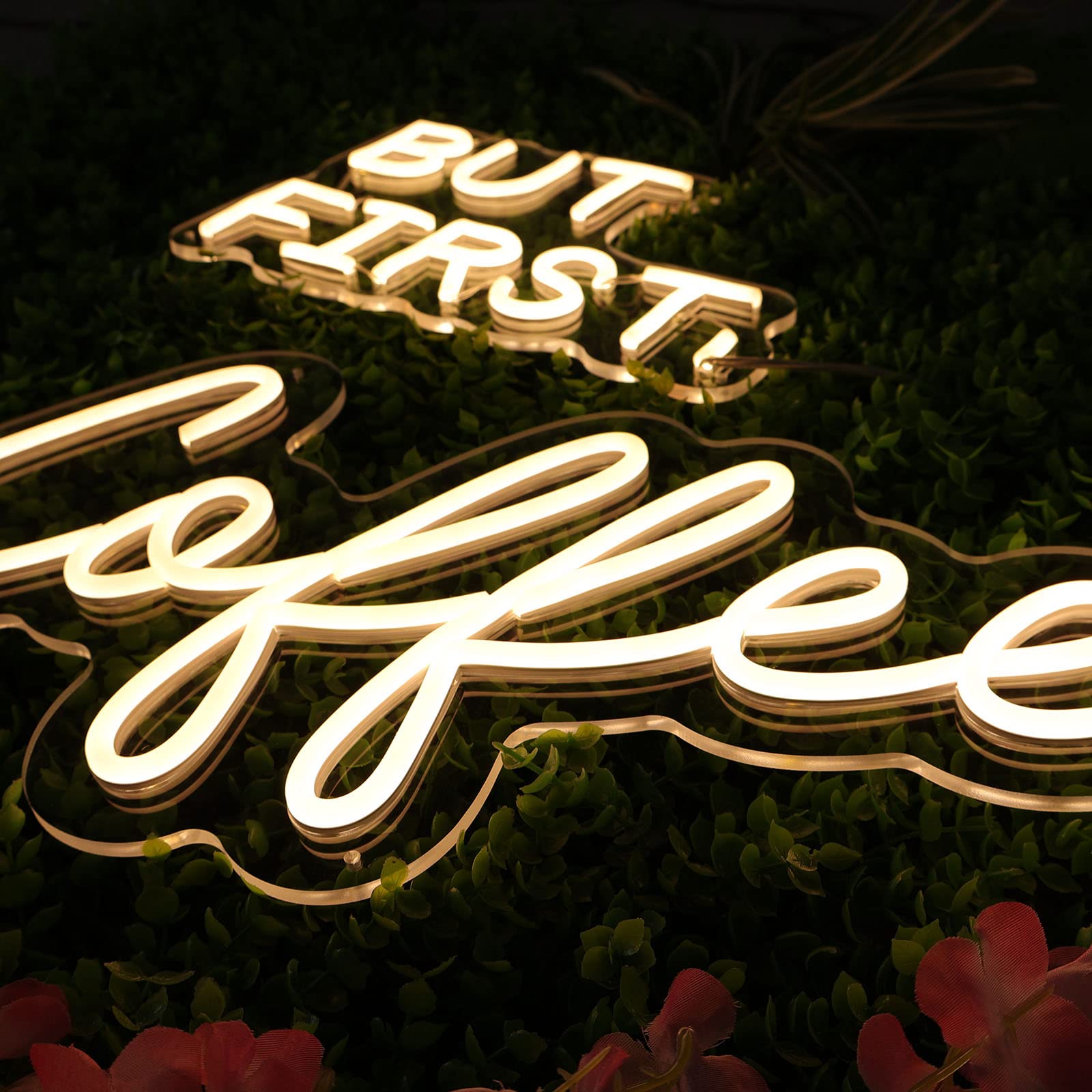 - 【LIGHT UP YOUR ROOM】BUT FIRST, COFEE neon sign will be a great decoration for your coffe bar, home coffe bar, room, party, shop, bar, etc. The warm white LED night light provides a romantic atmosphere, makes your room or important scene artistic and is an indispensable decoration for our colorful life.