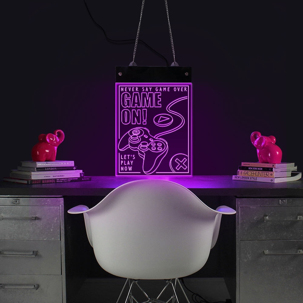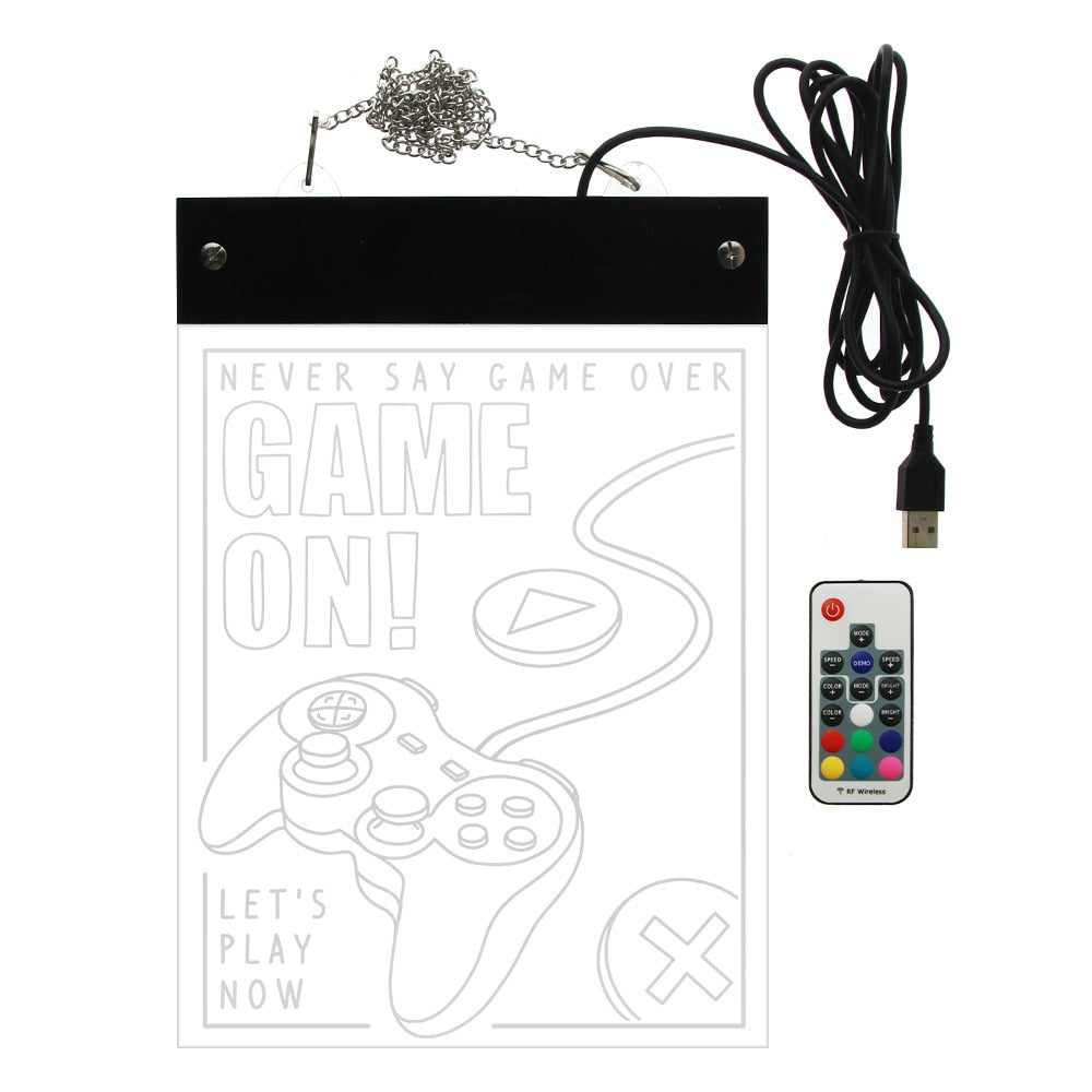 Game On LED Lighting Wall Neon Sign Acrylic Display Board