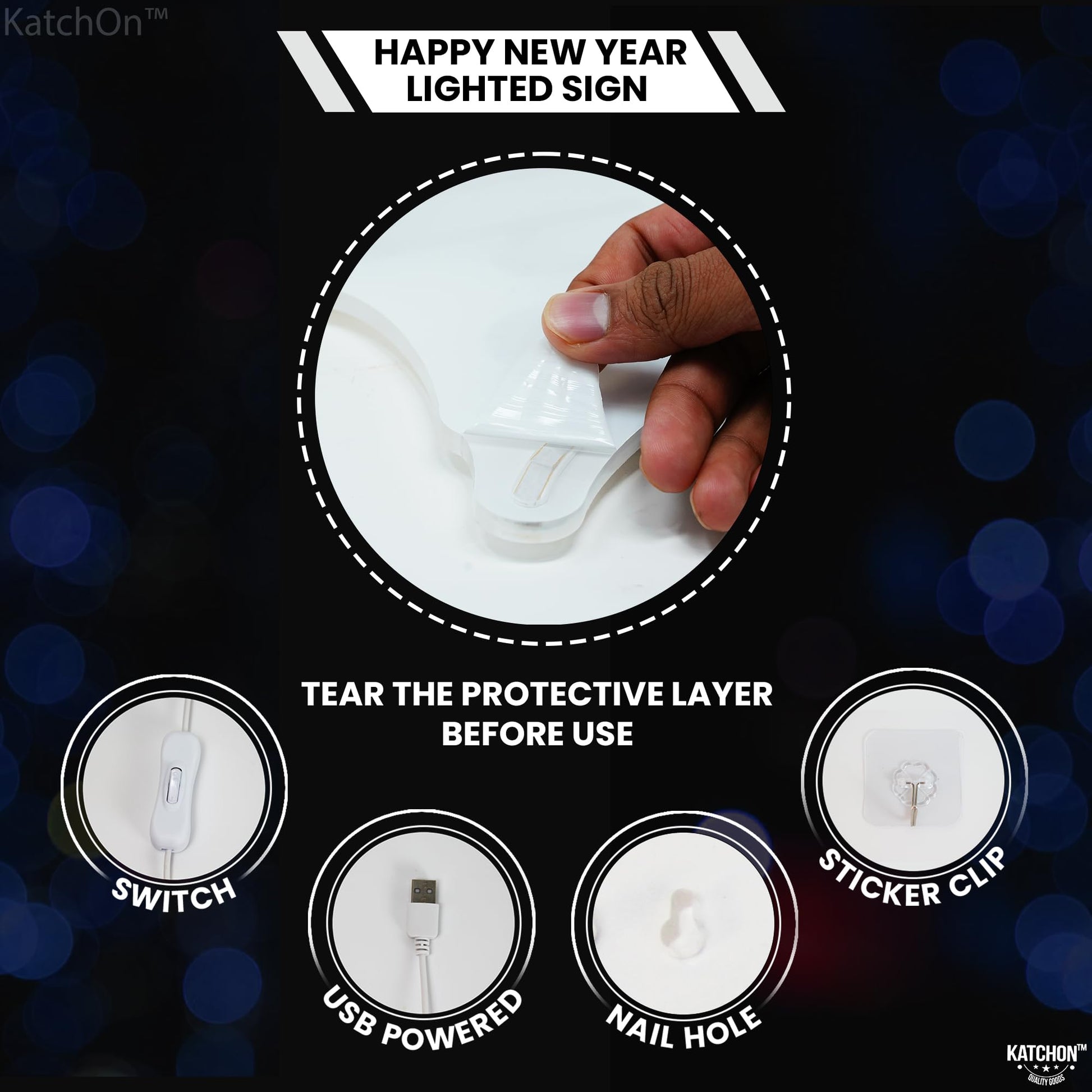 - PREMIUM GRADE 'A' MATERIALS | DURABLE | REUSABLE : Crafted with precision, High quality premium grade 'A' materials, the happy new year lighted sign for backdrop has exceptional durability & sturdiness which allows it to be reused many times. This LED happy new years eve lights is designed to endure a variety of environmental conditions. Whatever the condition, the Neon Happy new years light up sign for backdrop remains resilient throughout your NYE decorations 2024.