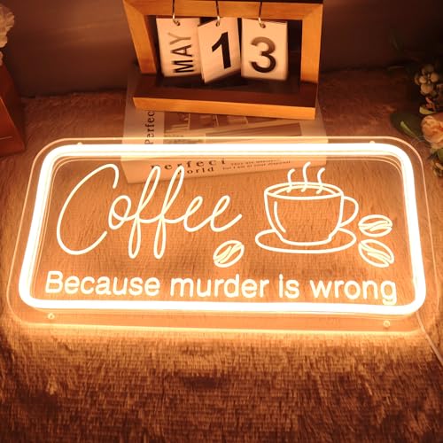 - Grab More Customers: Eye-catching Coffee Bar because murder is wrong LED neon sign will attract customers from a distance day or at night to expand your business. The charming neon glowing business sign will make your shop stand out from your competitors and be a hit on the street.