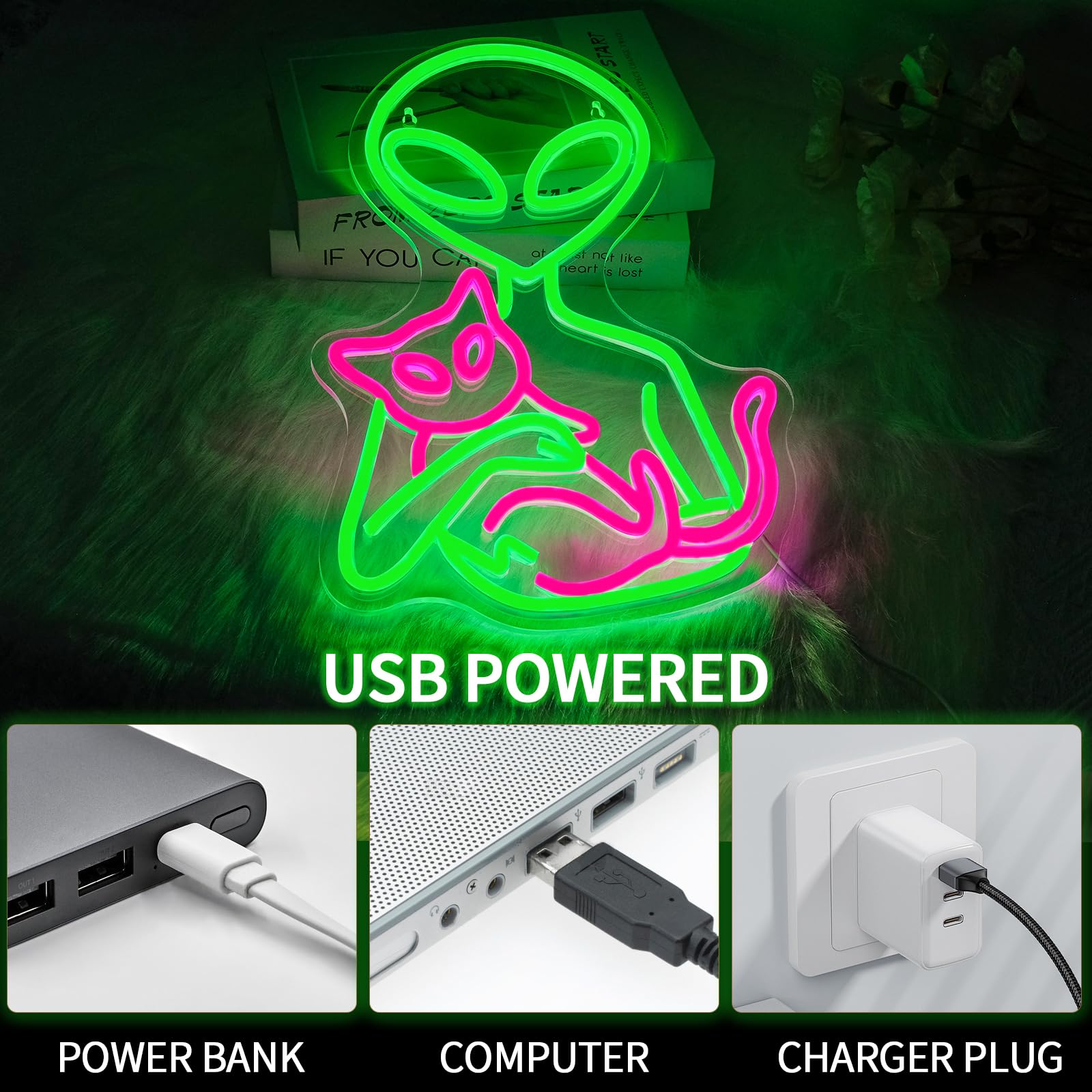 - Perfect Decoration and Gift: Alien cat neon lights can be used in art wall decoration, esports rooms, bedroom, game room, bar, and etc. Alien neon sign is also a ideal gift for your friends, family, lover and boyfriend